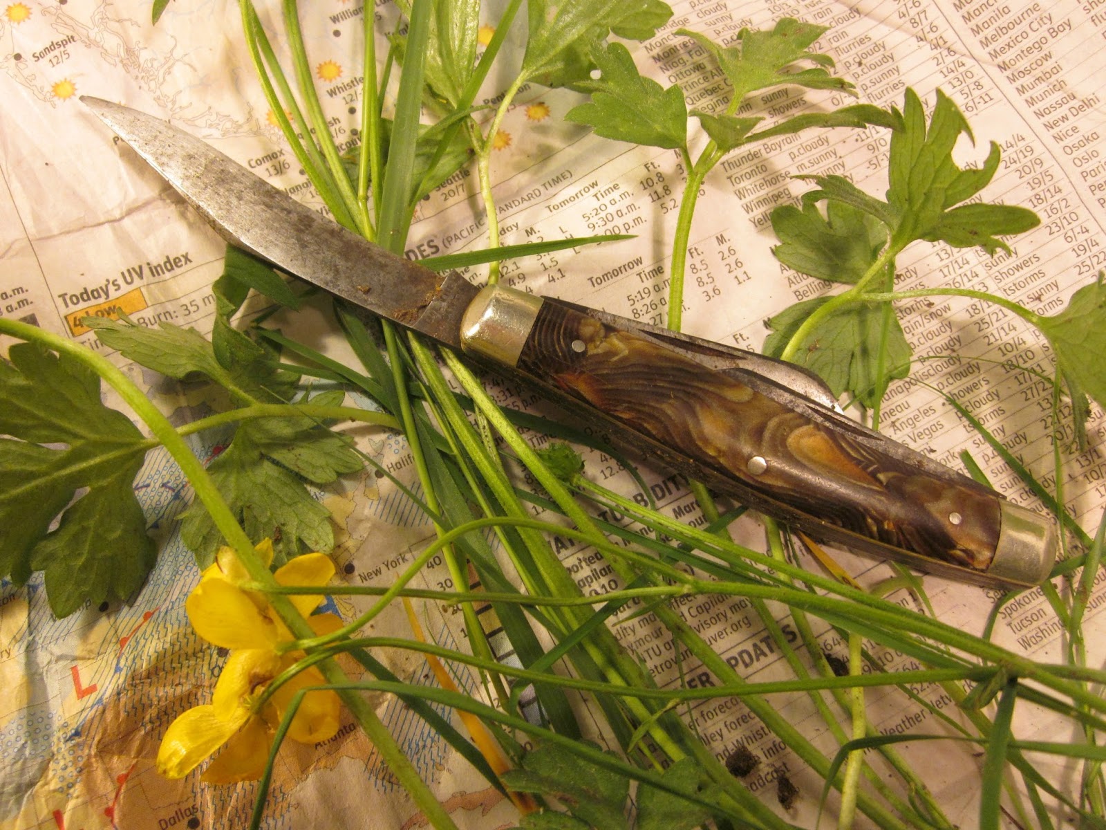I keep a penknife in my pocket at all times. Just because. It came in handy to dig a clump of buttercups.