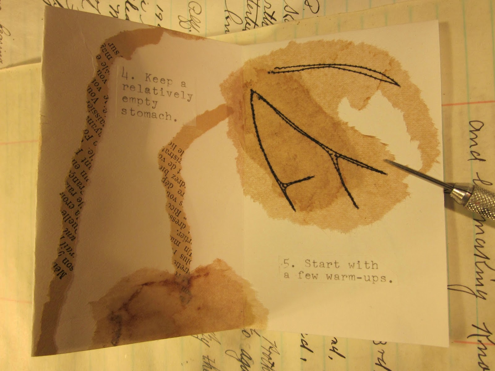 I want to express my heartfelt thanks to a friend who sent me a surprise gift in the mail. Her art inspired me no end and launched me into a whole new world of tea bag collage. Thank you so much Kim Henkel.