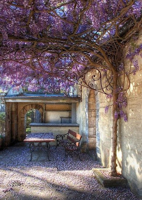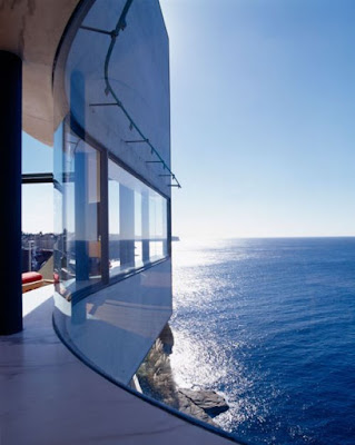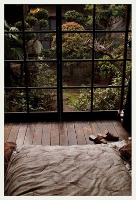Thinking about this theme of a room with a view, I knew I'd head on over to my pinterest boards and though I have ten [and counting] boards related to living spaces, I managed to sort through only the first two of them. I've known for ages that my most important view would be of water. In real life I have a sliver of a view of our harbour in Vancouver. Literally, I can see a sliver between two buildings. At night when it is very dark, there is a reflected line along the water surface that is coming from a large light on one of the docks. It looks like reflected moonlight to me. My second most important view would be of trees. I have those in spades where I live. Nonetheless, here's some culled photos from my pinterest boards with the idea of a 'view' from a room: