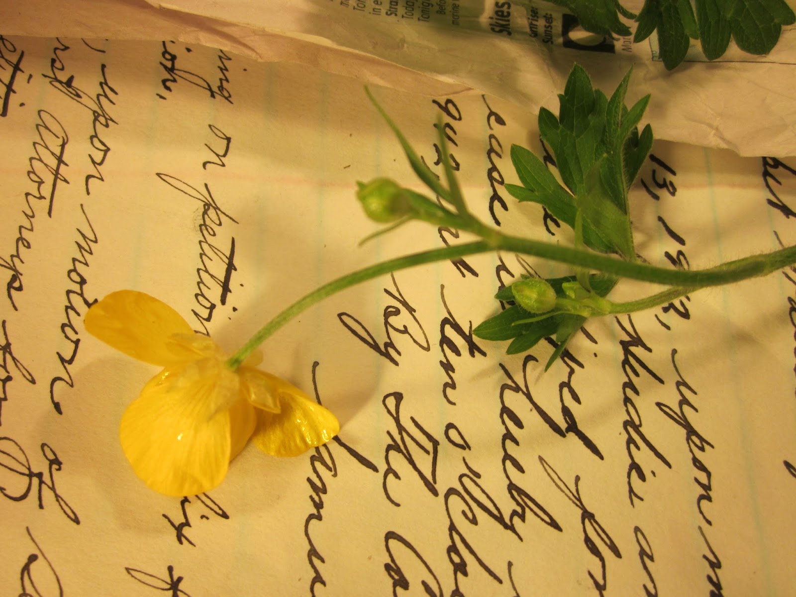 Okay, so here's my page of buttercup preservation. Pretend I am 11 years old as the printing reflects it. HA! I need to practice my hand. Also, spelling. 3 mistakes that I know of, one I did not catch, and who knows how many you may spot that I missed...