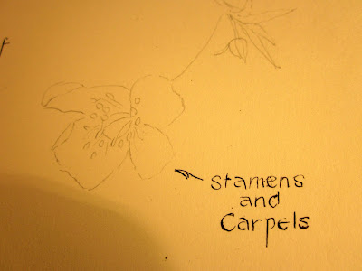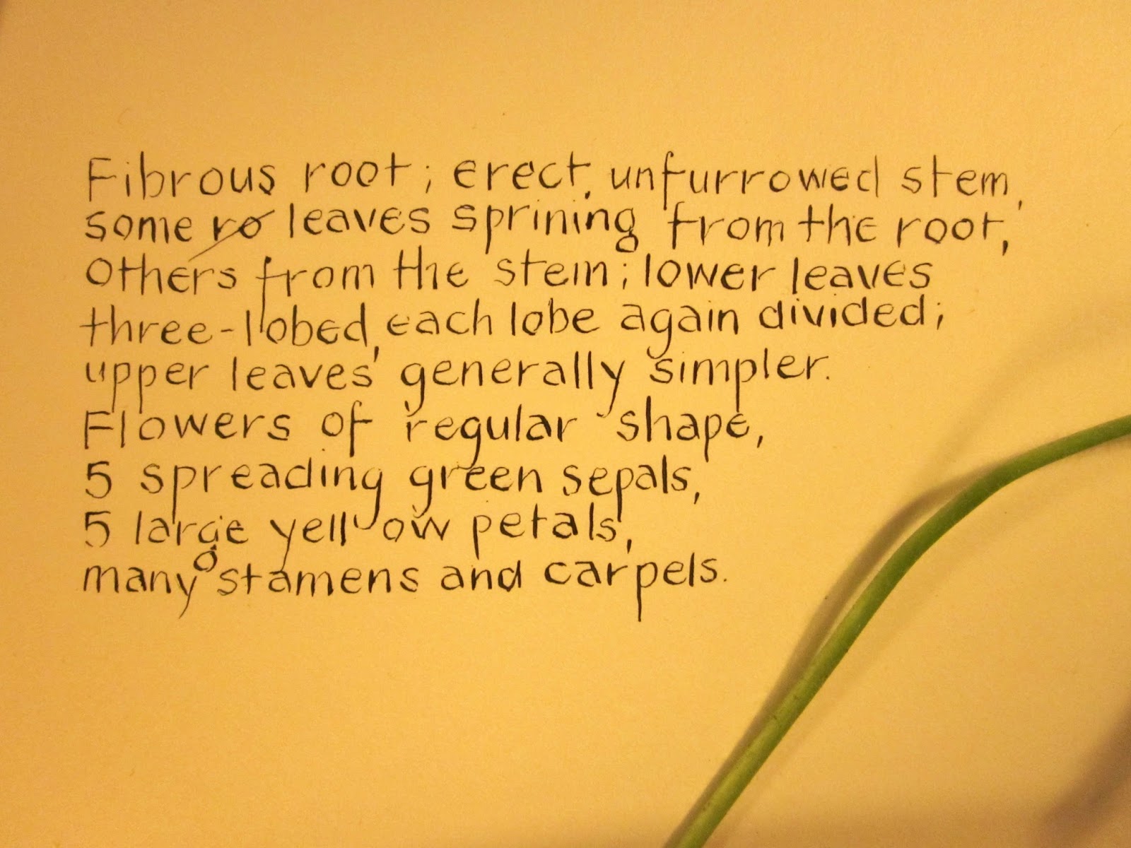 I knew that the drawing challenge held the theme 'garden party' and as I do not have a garden myself, I headed to the boulevard out front and walked around looking for buttercups. It didn't take long as they are everywhere. Lesson I in the book tells how to preserve buttercups. Doing this exercise will be my contribution for a garden party of sorts. My kind anyway.