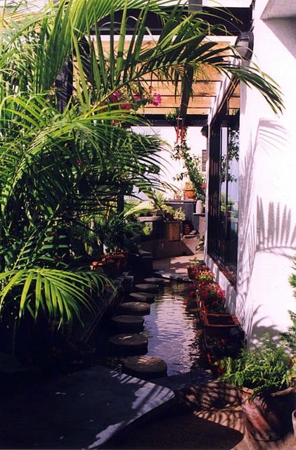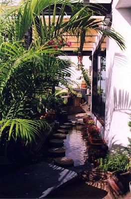 A koi pond on a balcony with trees works for me!